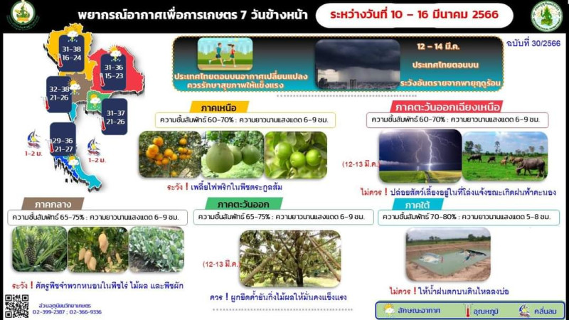พยากรณ์อากาศเพื่อการเกษตร 10-16 มี.ค. 2566